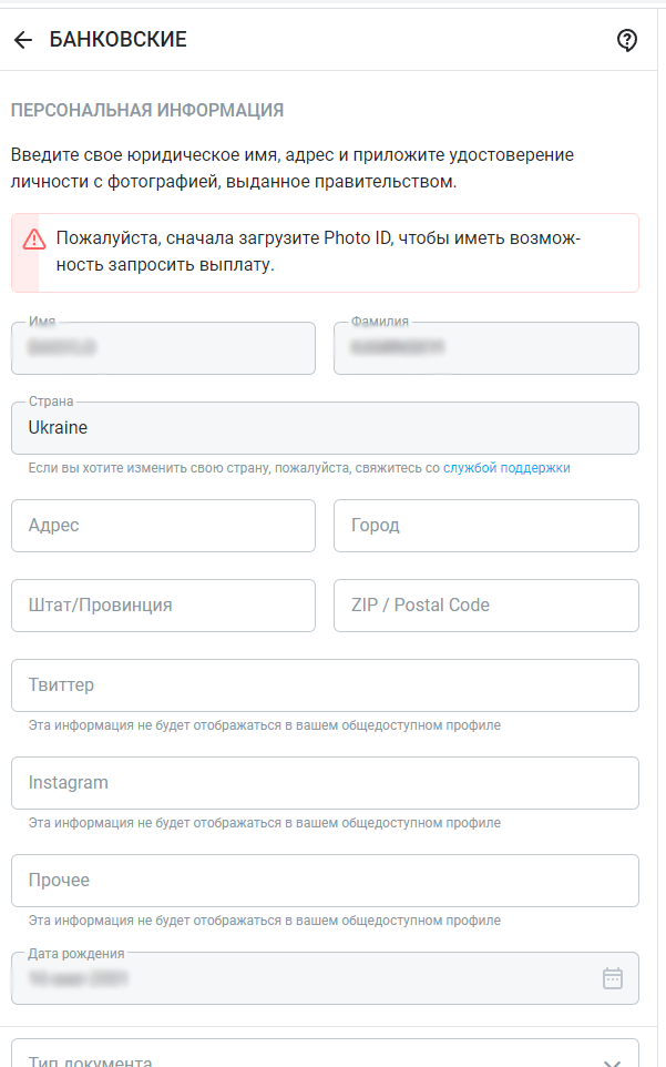 - Ваша страна должна быть в списке разрешенных (например, с паспортом РФ или РБ зарегистрироваться на площадке нельзя).